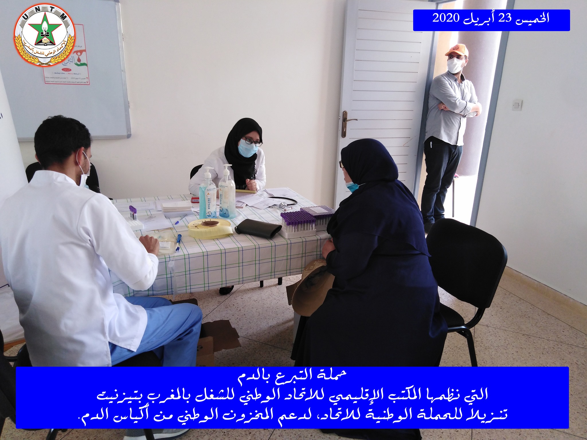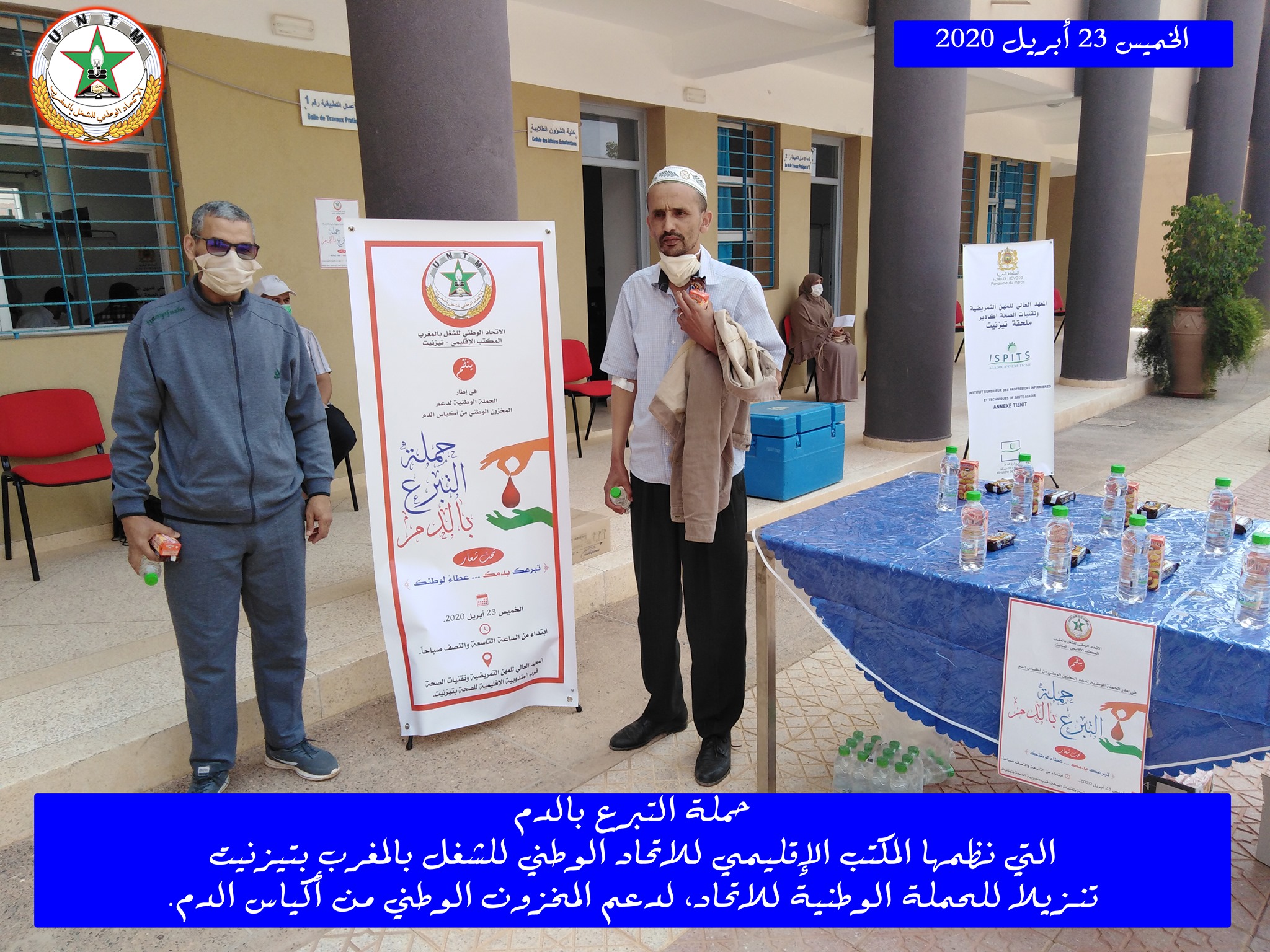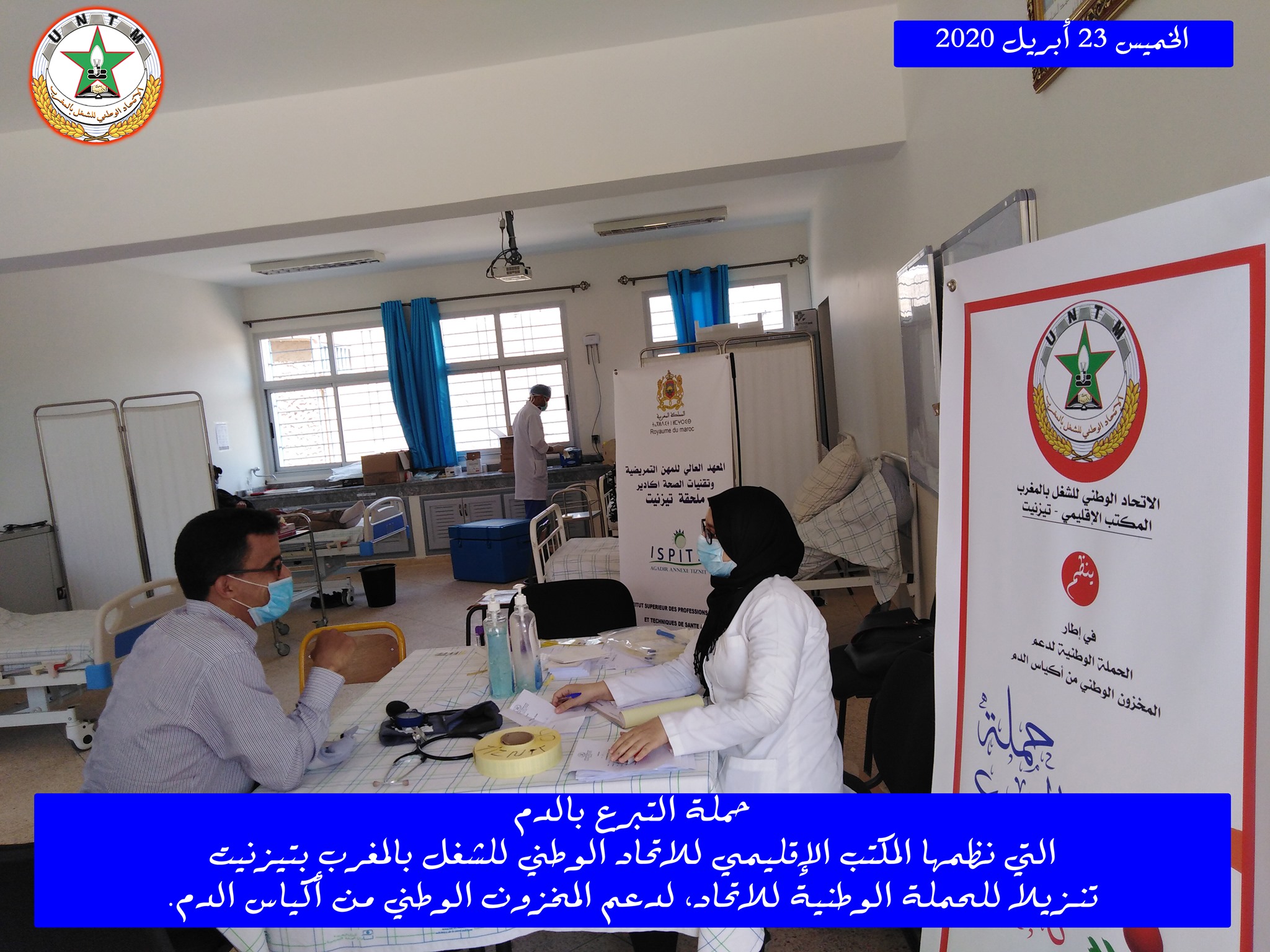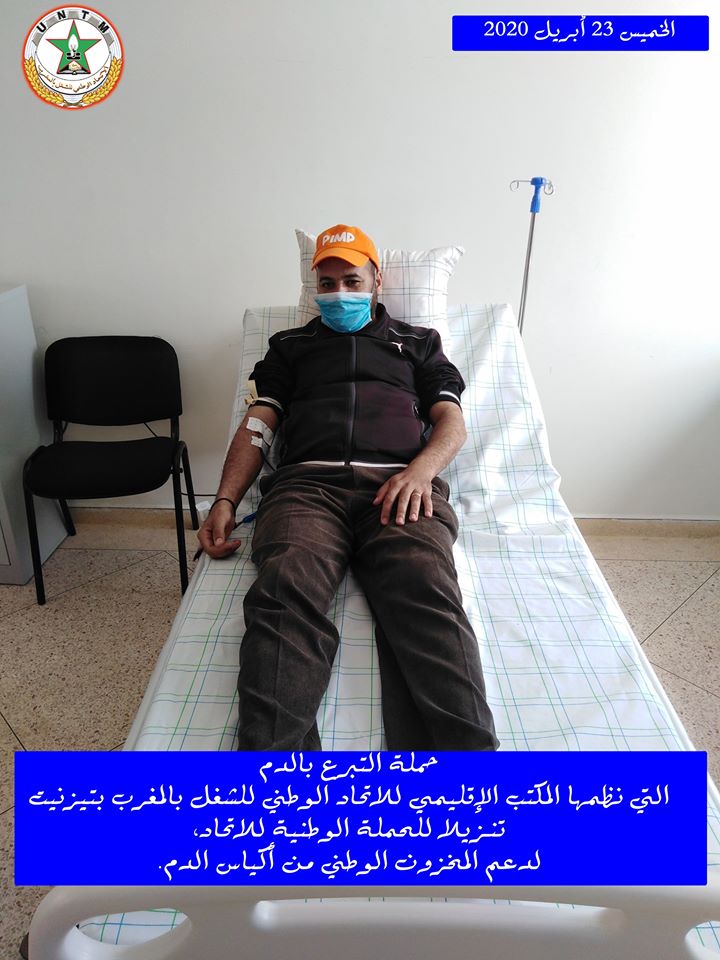 في إطار الحملة الوطنية لدعم المخزون الوطني لأكياس الدم، التي ينظمها الاتحاد الوطني للشغل بالمغرب تحت شعار “تبرعك بدمك .. عطاء لوطنك”، نظم المكتب الإقليمي للاتحاد الوطني للشغل بالمغرب بتيزنيت يوم الخميس 23 أبريل 2020، حملة للتبرع بالدم، وذلك بفضاء المعهد العالي للمهن التمريضية وتقنيات الصحة بتيزنيت، في احترام تام للتدابير الاحترازية المعتمدة.