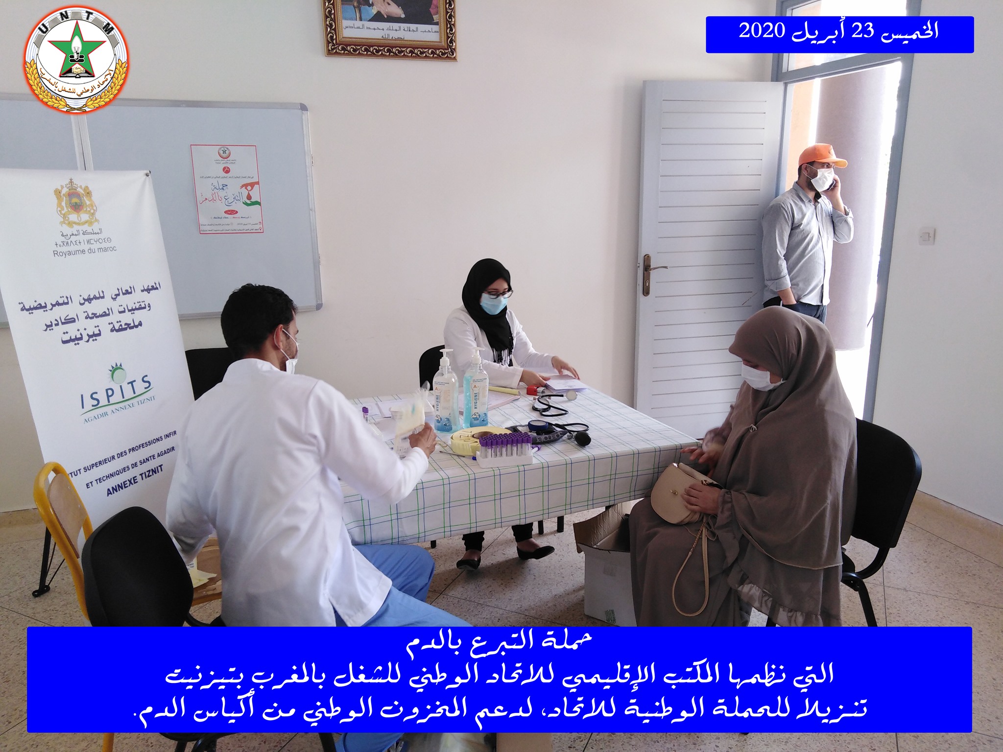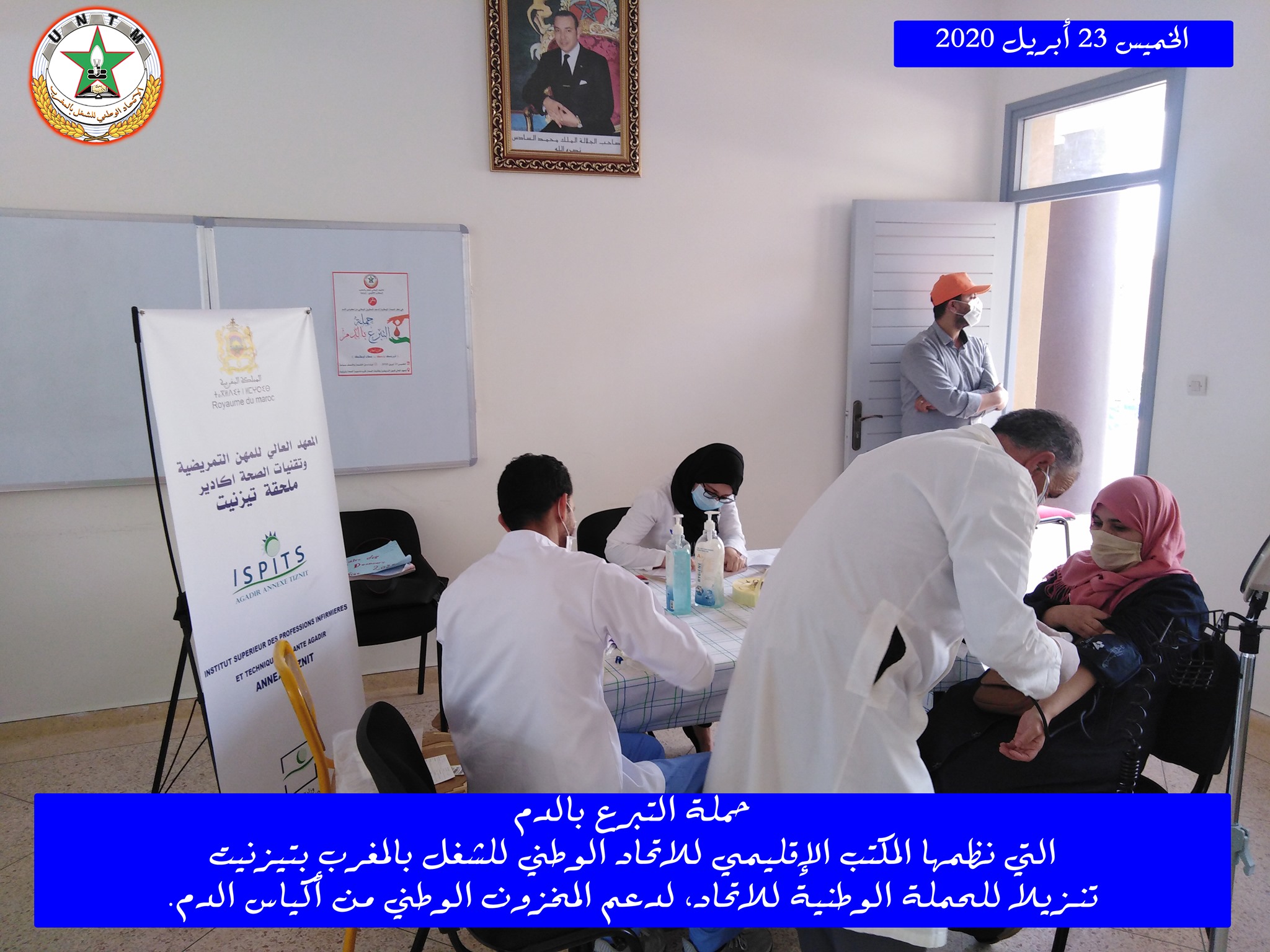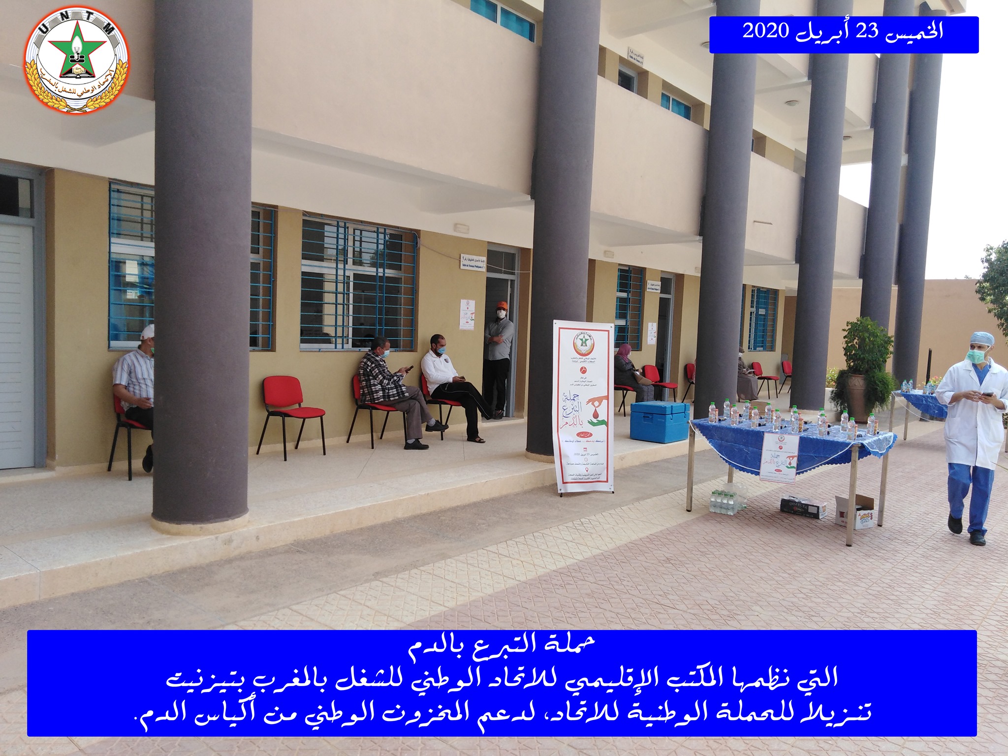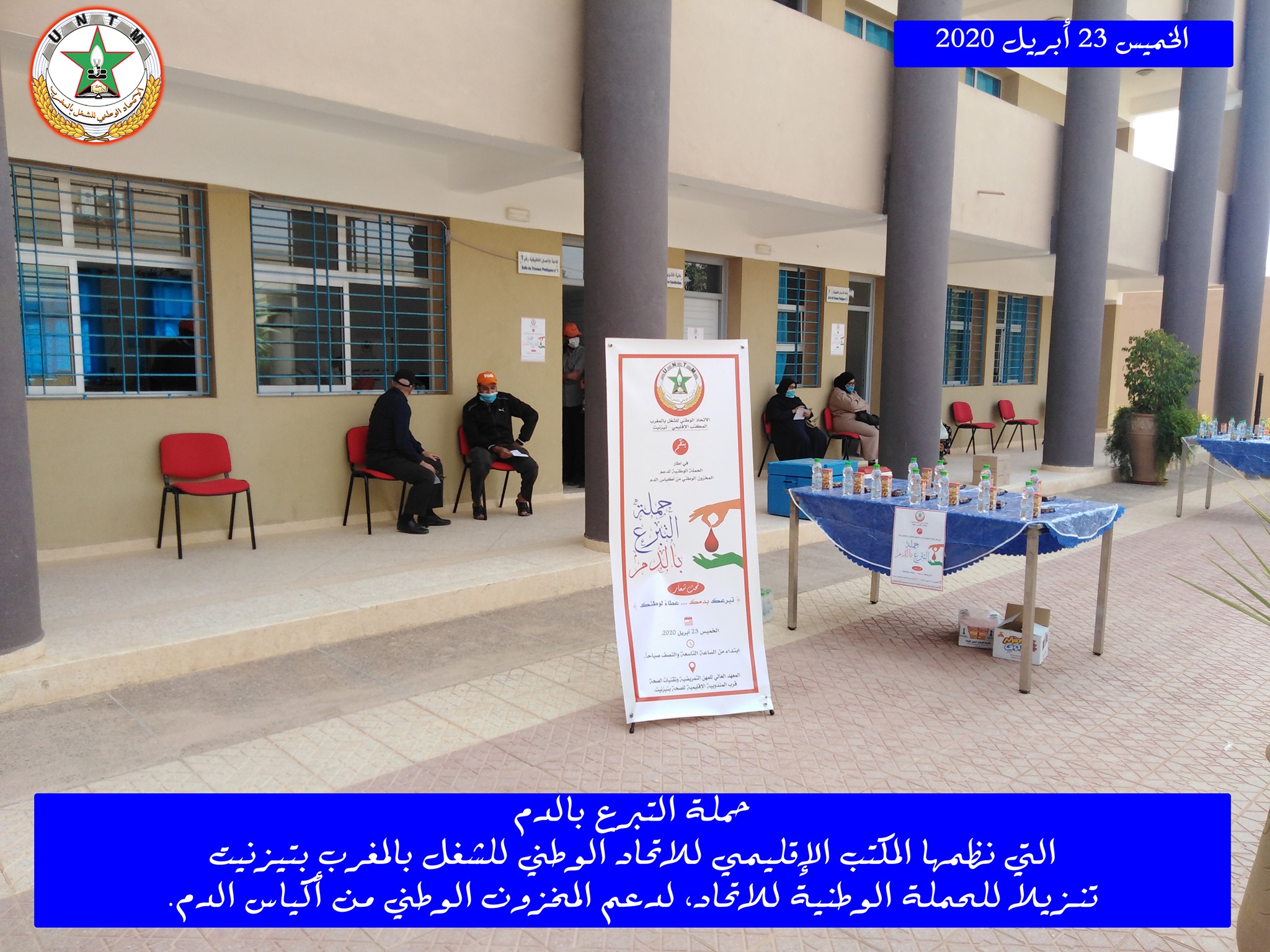في إطار الحملة الوطنية لدعم المخزون الوطني لأكياس الدم، التي ينظمها الاتحاد الوطني للشغل بالمغرب تحت شعار “تبرعك بدمك .. عطاء لوطنك”، نظم المكتب الإقليمي للاتحاد الوطني للشغل بالمغرب بتيزنيت يوم الخميس 23 أبريل 2020، حملة للتبرع بالدم، وذلك بفضاء المعهد العالي للمهن التمريضية وتقنيات الصحة بتيزنيت، في احترام تام للتدابير الاحترازية المعتمدة.