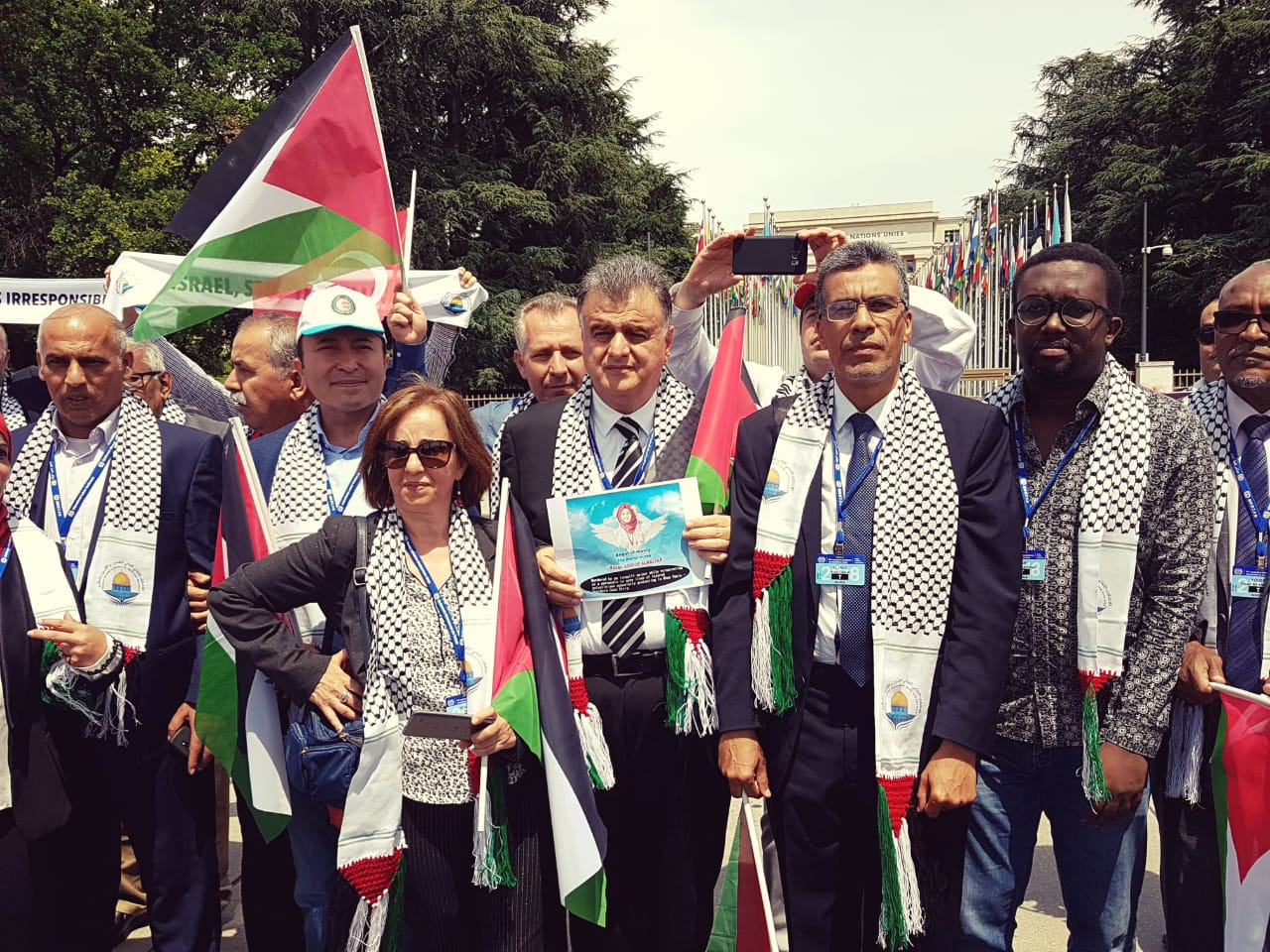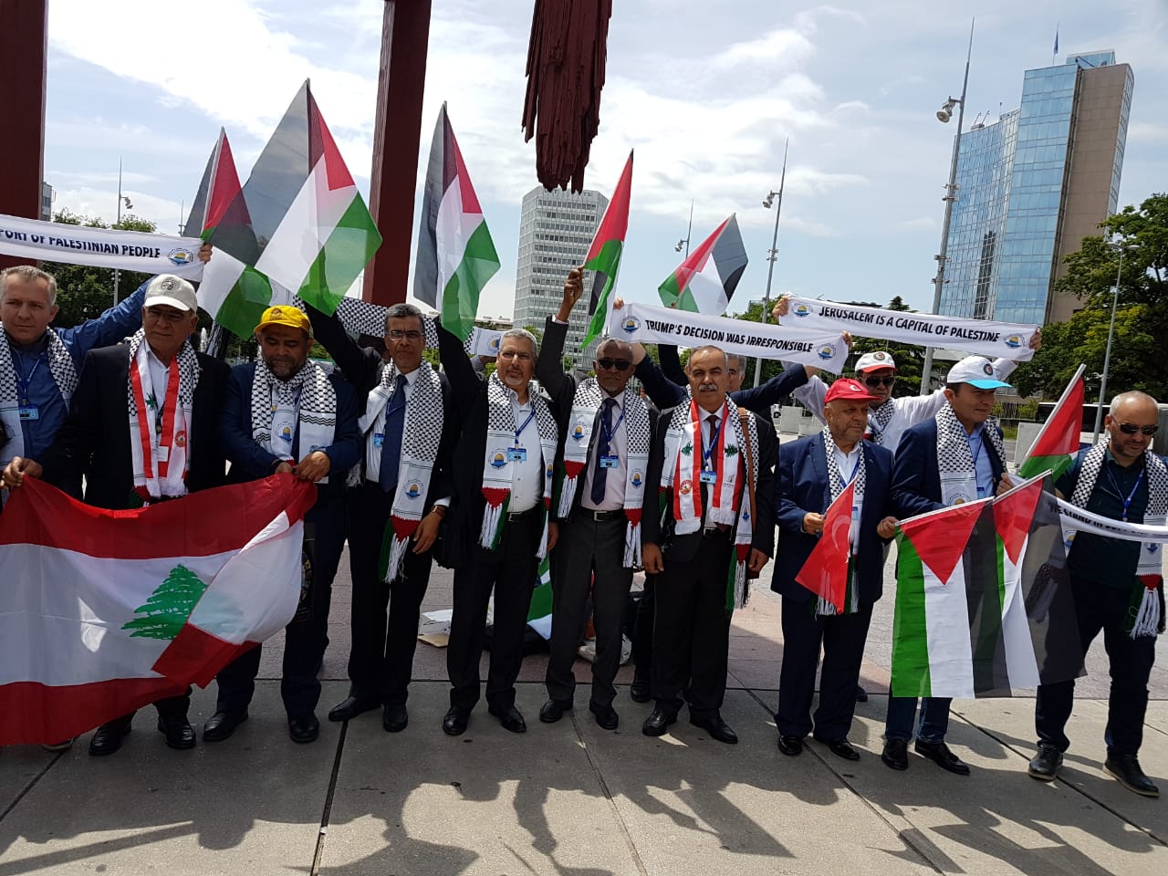 وعرفت الوقفة التي نُظمت على هامش الدورة 107 للمؤتمر الدولي للعمال الذي تحتضنه العاصمة السويسرية جنيف، مشاركة العديد من الاتحادات والنقابات العمالية العربية والإفريقية والإسلامية المنضوية ضمن الائتلاف النقابي العالمي للتضامن مع القدس وفلسطين، بالإضافة إلى ثلة من المؤسسات الدولية والعمالية، رافعين العلم الفلسطيني ومنددين بقرار الرئيس الأمريكي نقل سفارة بلاده إلى القدس المحتلة.