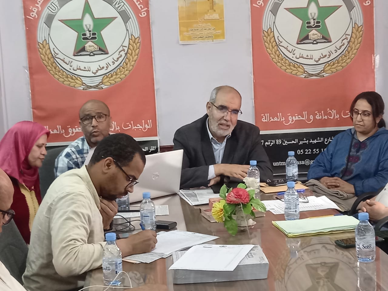 عقد المكتب الجهوي للاتحاد الوطني للشغل بالمغرب بجهة الدار البيضاء سطات، السبت 28 أبريل 2023، لقاءا تواصليا مع الأمانة العامة للاتحاد، بحضور الاخ الامين العام، الأستاذ محمد الزويتن، ونائبه الثاني الاخ حميد بن الشيخ، وذلك في إطار متابعة الإعداد لفاتح ماي وفق ما كان مدرج بورقة لوحة القيادة الجهوية للاعداد لمحطة فاتح ماي.