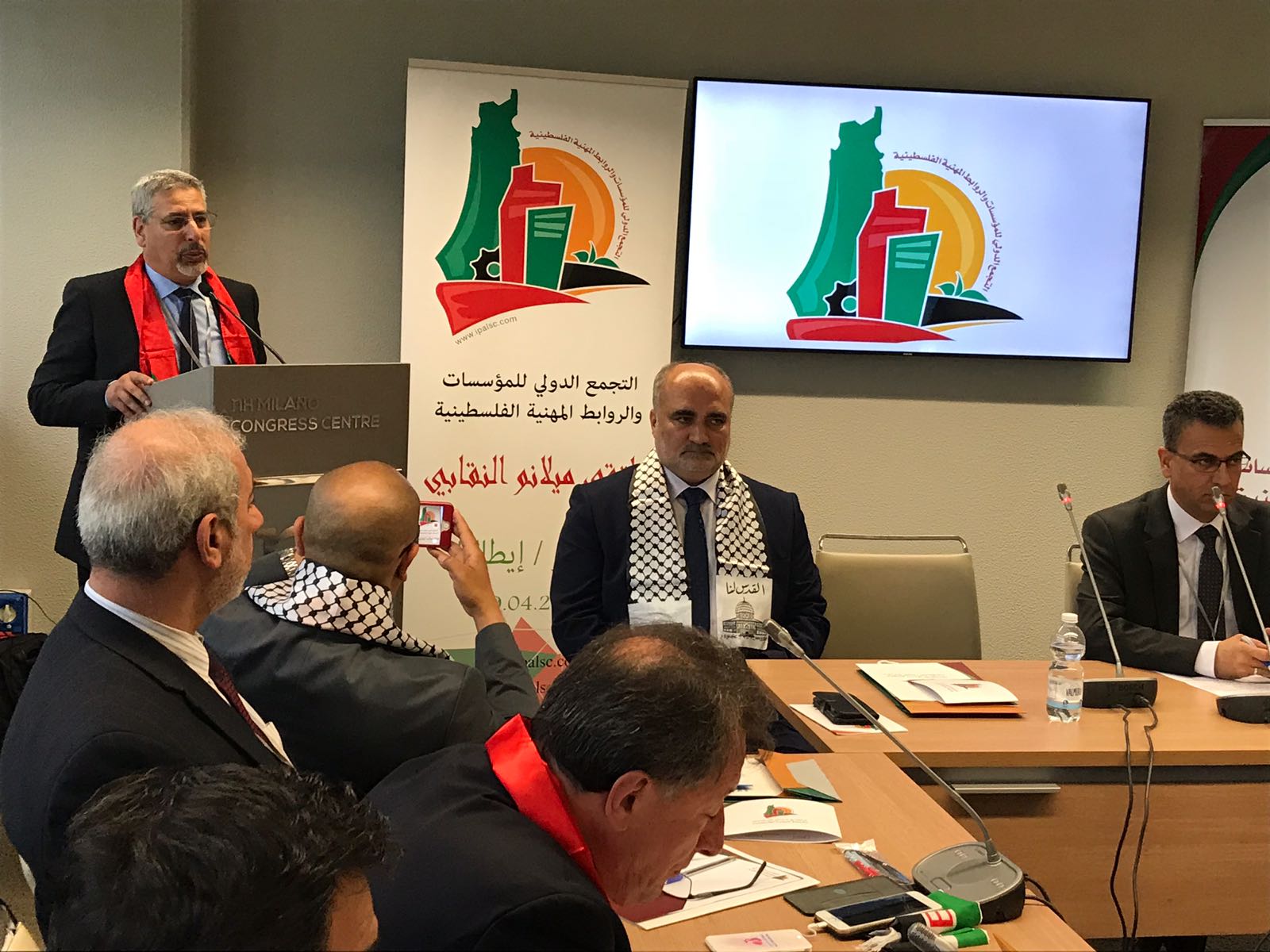 وإنه من واقع العمل النقابي في العالم وبما يجسد حالة تاريخية تضامنية مع النقابيين والمهنيين الفلسطينيين ونضالهم في الدفاع عن حقوقهم النقابية والمهنية المشروعة وثوابتهم الراسخة.