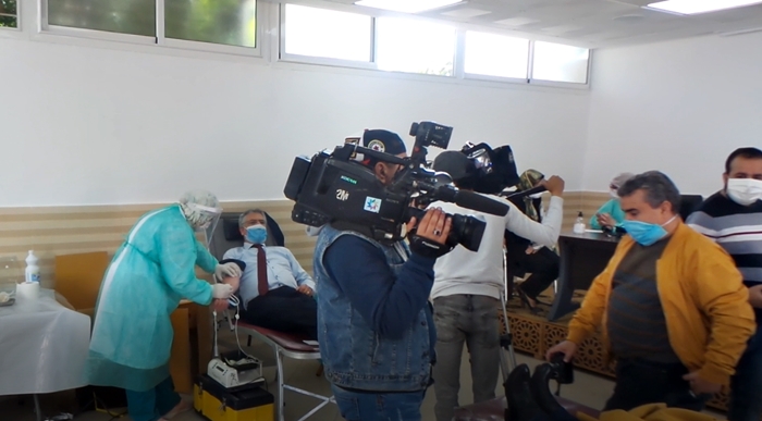 بحضور الأمين العام للاتحاد الوطني للشغل بالمغرب، الأستاذ عبد الإله الحلوطي وأعضاء المكتب الوطني،والكتاب العامون لبعض القطاعات التابعة للاتحاد ومناضلين ومناضلات النقابة انطلقت اليوم الخميس 16 أبريل 2020، بالمقر المركزي للاتحاد بالرباط، الحملة الوطنية للتبرع بالدم التي دعا إليها الاتحاد، تفاعلا مع النداء الذي أطلقه المركز الوطني لتحاقن الدم مؤخرا إثر النقص الكبير الذي يعرفه المخزون الوطني من أكياس الدم، بسبب تراجع عدد المتبرعين”، خاصة خلال هذه الظرفية التي تعرفها المملكة في مواجهة فيروس ” كورونا “.