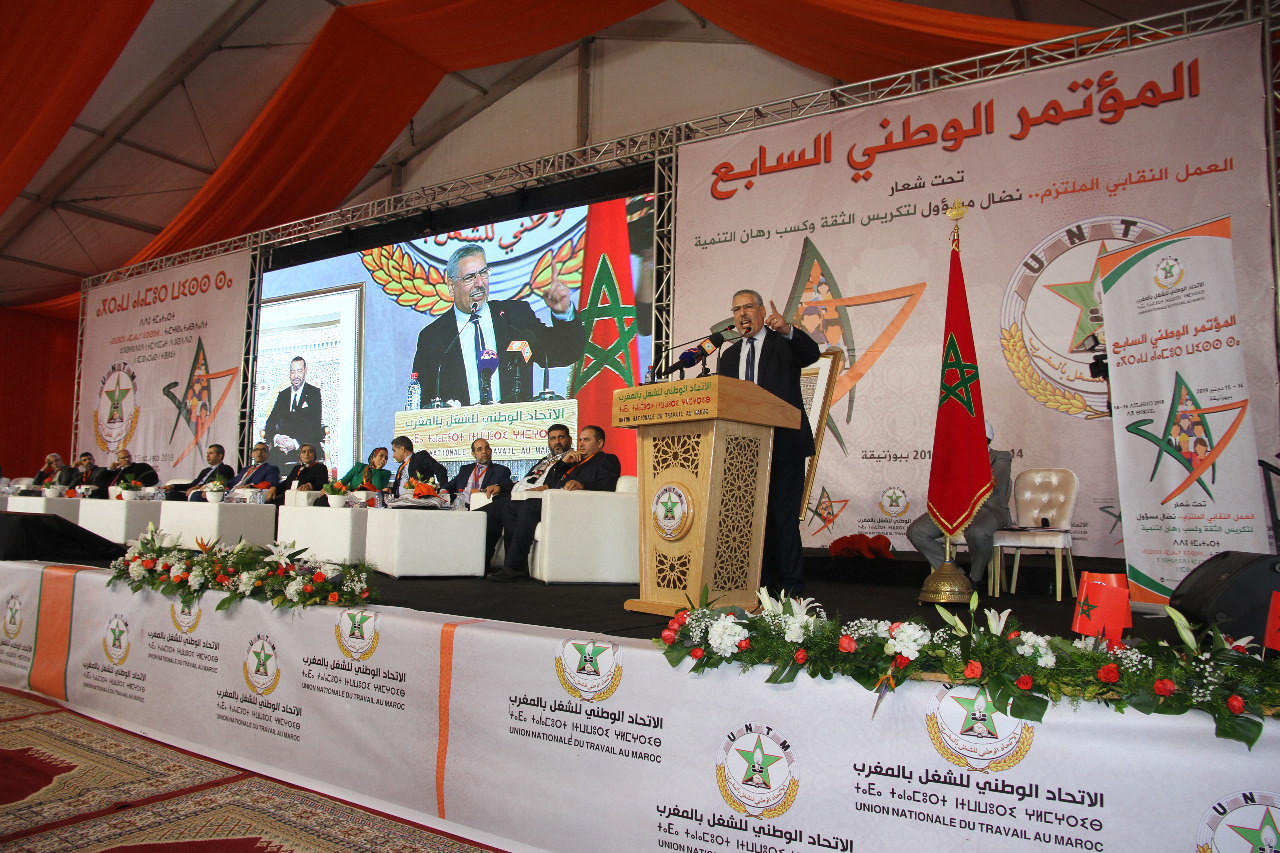 تحت شعار “العمل النقابي الملتزم: نضال مسؤول لتكريس الثقة وكسب رهان التنمية” انعقد بحمد الله وتوفيقه يومي السبت والأحد 17و18ربيع الآخر 1441 الموافق لـ 14و15 دجنبر 2019 المؤتمر الوطني السابع للاتحاد الوطني للشغل بالمغرب بمركب مولاي رشيد ببوزنيقة .
