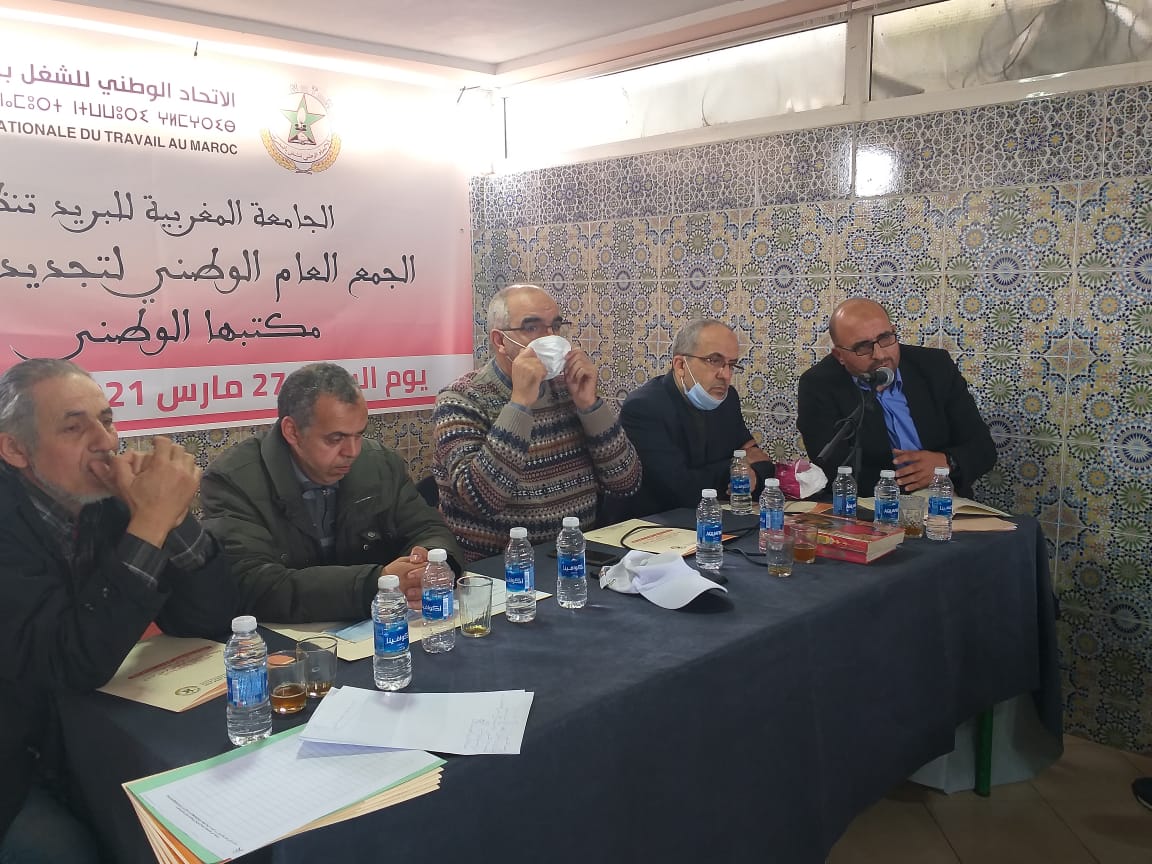 عقدت الجامعة المغربية للبريد المنضوية تحت لواء الاتحاد الوطني للشغل بالمغرب، السبت 27 مارس 2021، بالدار البيضاء، جمعها العام الوطني لتجديد هيكلة مكتبها الوطني.