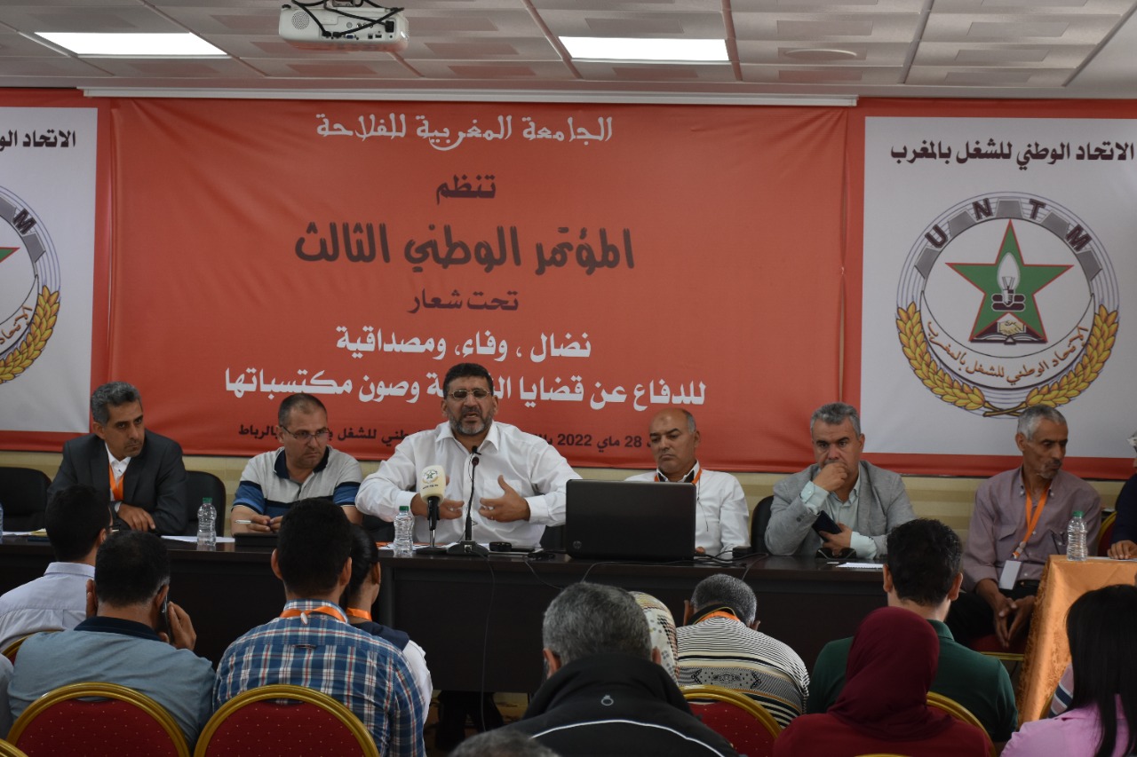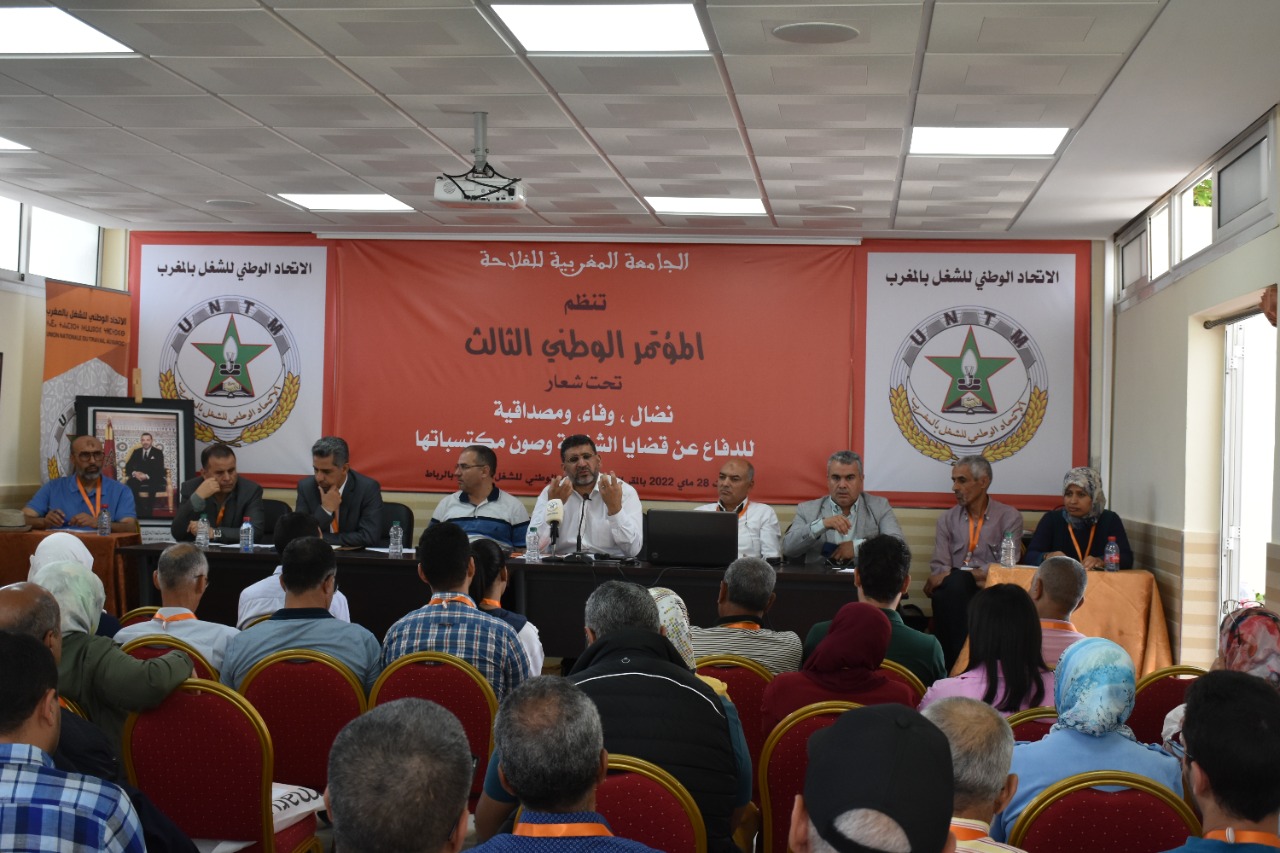 تحت شعار “” نضال..وفاء.. مصداقية، للدفاع عن قضايا الشغيلة وصون مكتسباتها”.، عقدت الجامعة المغربية للفلاحة المنضوية تحت لواء الاتحاد الوطني للشغل بالمغرب، اليوم السبت 28 ماي 2022 بالرباط، مؤتمرها الوطني الثالث اليوم 28 ماي 2022، تحت إشراف نائب الأمين العام للاتحاد الوطني للشغل بالمغرب عبد الإله دحمان وعضوي المكتب الوطني،حميد بن الشيخ وخالد السطي.
