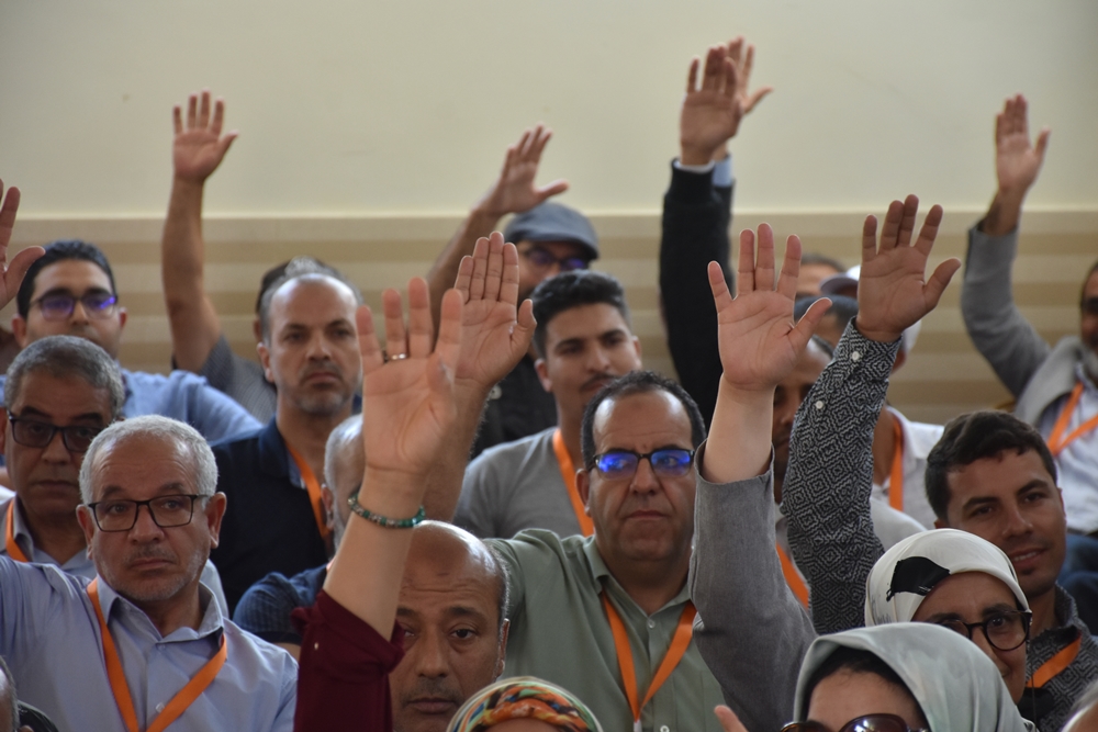 إلى ذلك أشاد محمد دعنون الكاتب المنتهية ولايته بمناضلي ومناضلات الجامعة، ودعا في كلمة مؤثرة الى دعم ومساندة المكتب الوطني الجديد.