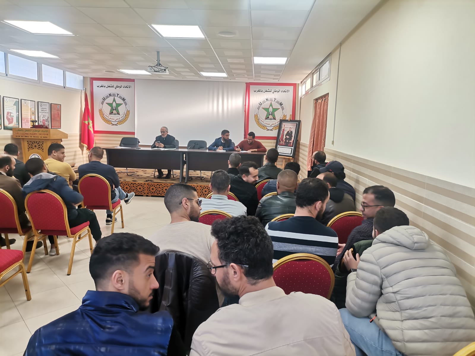وذكر الاخ الكاتب العام، بسياق انعقاد الاجتماع، الذي يصادف الذكرى الخمسينية لتأسيس الاتحاد الوطني للشغل المغرب، على يد الدكتور الراحل عبد الكريم الخطيب، خمسون سنة كانت حافلة بالنضال والدفاع عن مطالب الشغيلة، والقضايا الوطنية وعلى رأسها الوحدة الترابية للمملكة، والقضية الفلسطينية، والشعوب المستضعفة.