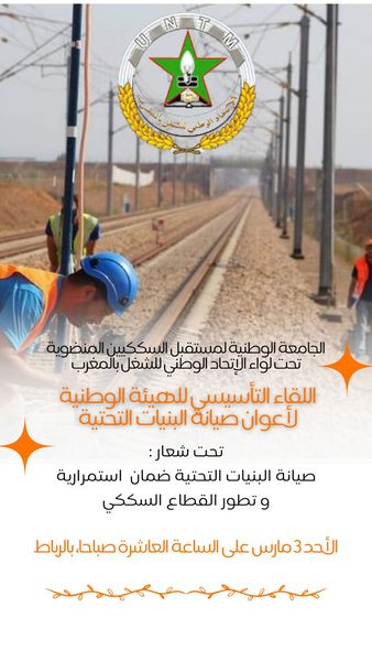 تفعيلا لقرار المكتب الوطني للجامعة الوطنية لمستقبل السككيين القاضي بإحداث هيئآت وطنية خاصة بكل فئة، تم الأحد 3 مارس 2024، عقد اجتماع تأسيسي للهيئة الوطنية لمتعاوني صيانة البنيات التحتية حضوريا وعن بعد برئاسة الاخ الكاتب العام للجامعة محمد لحبيب الراني.