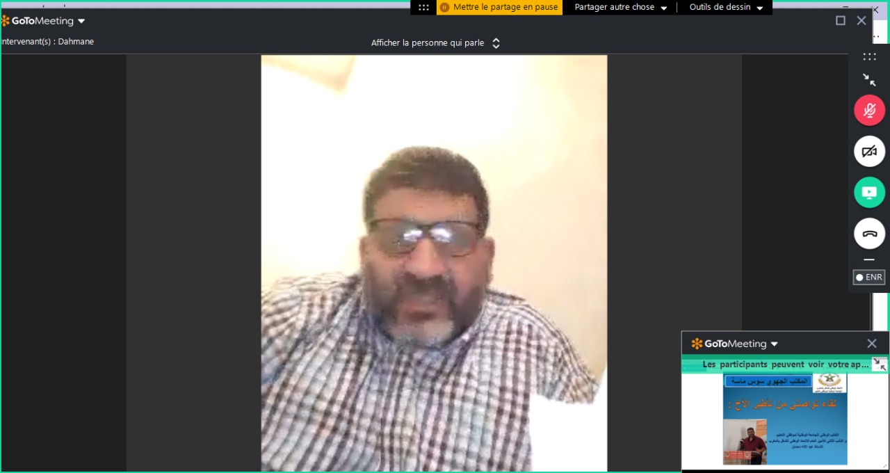 في إطار اللقاءات التنظيمية التي ينظمها عن بعد، عقد المكتب الجهوي للجامعة الوطنية لموظفي التعليم بجهة سوس ماسة، المنضوي تحت لواء الاتحاد الوطني للشغل بالمغرب، اجتماعه العادي يوم الخميس 23 أبريل 2020، بمشاركة الكاتب الوطني للجامعة الوطنية لموظفي التعليم الأخ عبد الإله دحمان.