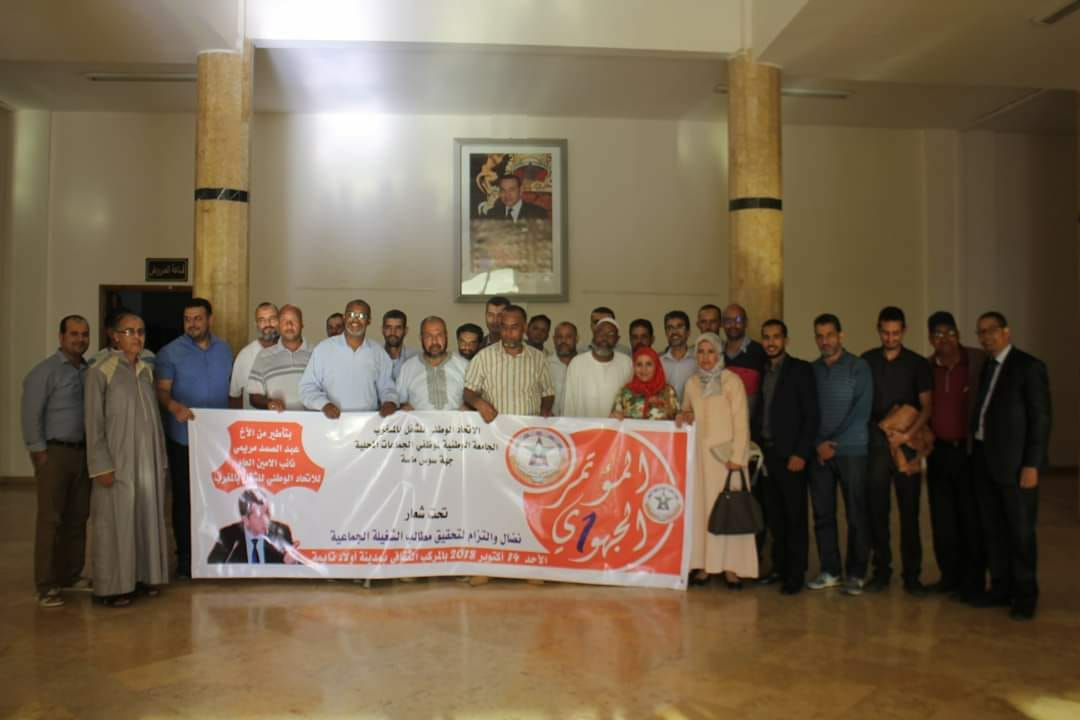عقدت الجامعة الوطنية لموظفي الجماعات المحلية المنضوية تحت لواء الاتحاد الوطني للشغل بالمغرب الأحد 14 اكتوبر 2018 بأولاد تايمة، مؤتمرها الجهوي الأول لجهة سوس ماسة، تحت شعار “نضال والتزام من أجل تحقيق مطالب الشغيلة الجماعية”، وذلك في إطار باستكمال الهيكلة التنظيمية للجامعة، وتنزيلا للبرنامج المسطر من طرف المكتب الوطني.