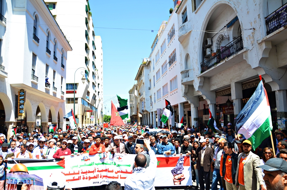 يذكر أن المسيرة عرفت مشاركة الآلاف من المغاربة، أتوا للعاصمة الرباط من مختلف جهات المملكة للتعبير عن مساندتهم لحق الشعب الفلسطيني في العودة، ورفضا لقرار الرئيس الأمريكي بنقل سفارة بلاده إلى القدس المحتلة.