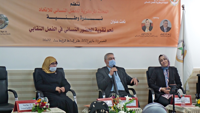 واكد الأمين العام ان قواعد الاتحاد ومنهاجه ومقرراته التنظيمية تضمن تواجد المرأة، مؤكدا ان مناضلات ومناضلو الاتحاد يتشرفون بأن تترأس امرأة (الأخت فاطمة بلحسن)، مجلسه الوطني الذي يعتبر أعلى هيئة بعد المؤتمر الوطني مشيرا إلى أن الاتحاد قطع أشواطا مهمة لكنه يطمح إلى المزيد.