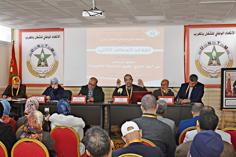 عقدت الجامعة المغربية لقطاع التكوين المهني المنضوية تحت لواء الاتحاد الاوطني للشغل بالمغرب، اليوم الأحد 25 دجنبر 2022، مؤتمرها الوطني الثاني ، تحت شعار ” نضال مستمر من أجل انتزاع حقوق الشغيلة التكوينية”، برئاسة عضوي المكتب الوطني للاتحاد، الدكتور رضا شروف، والأستاذة حليمة شويكة.
