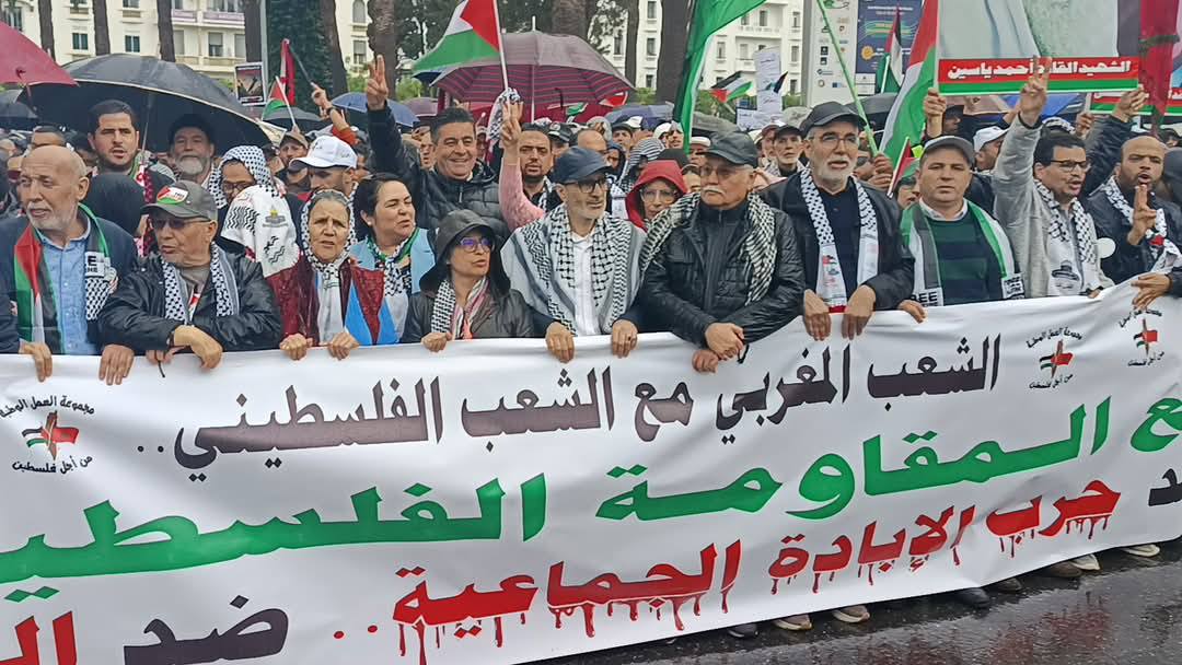 في مسيرة حاشدة، خرجت أعداد غفيرة من الشعب المغربي صبيحة الأحد 13 أبريل 2025، في مسيرة احتجاجية للتعبير عن الدعم المطلق للشعب الفلسطيني عامة ولأهل غزة خاصة لما يتعرضون له من إبادة جماعية منذ 7 أكتوبر 2023.