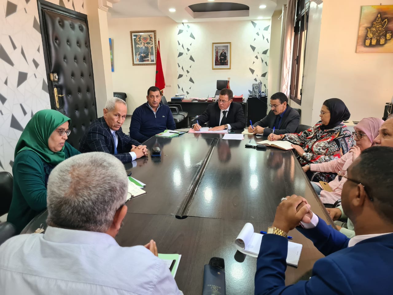 هذا وحضر الاجتماع بعض نواب الرئيس ومدير المصالح ورئيسة مصلحة موارد البشرية والتكوين ورئيسة مصلحة التواصل والعلاقات العامة، وعن الجامعة كل من الاخ خالد الاملوكي الكاتب الجهوي للجامعة بالجهة والاخ علي تغذا الكاتب الاقليمي للجامعة بعمالة الرباط وأعضاء من المكتب الاقليمي المذكور.