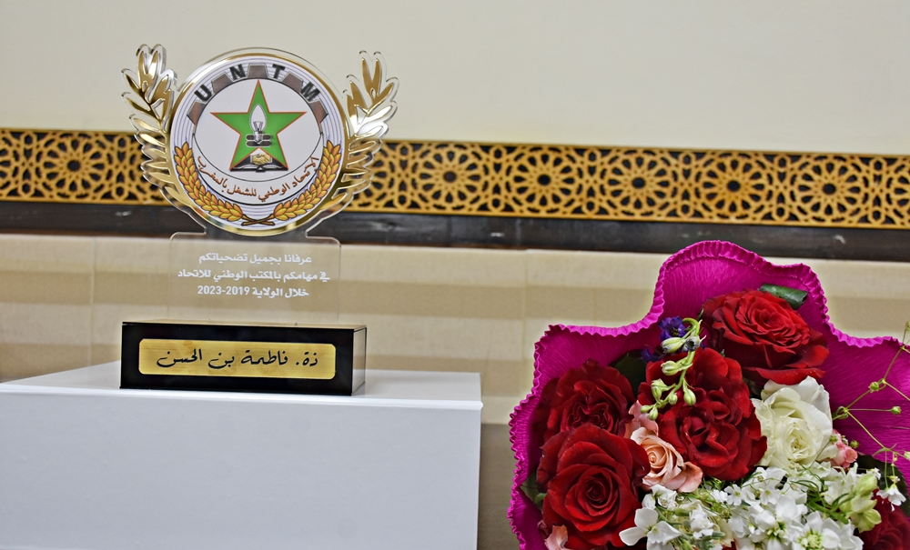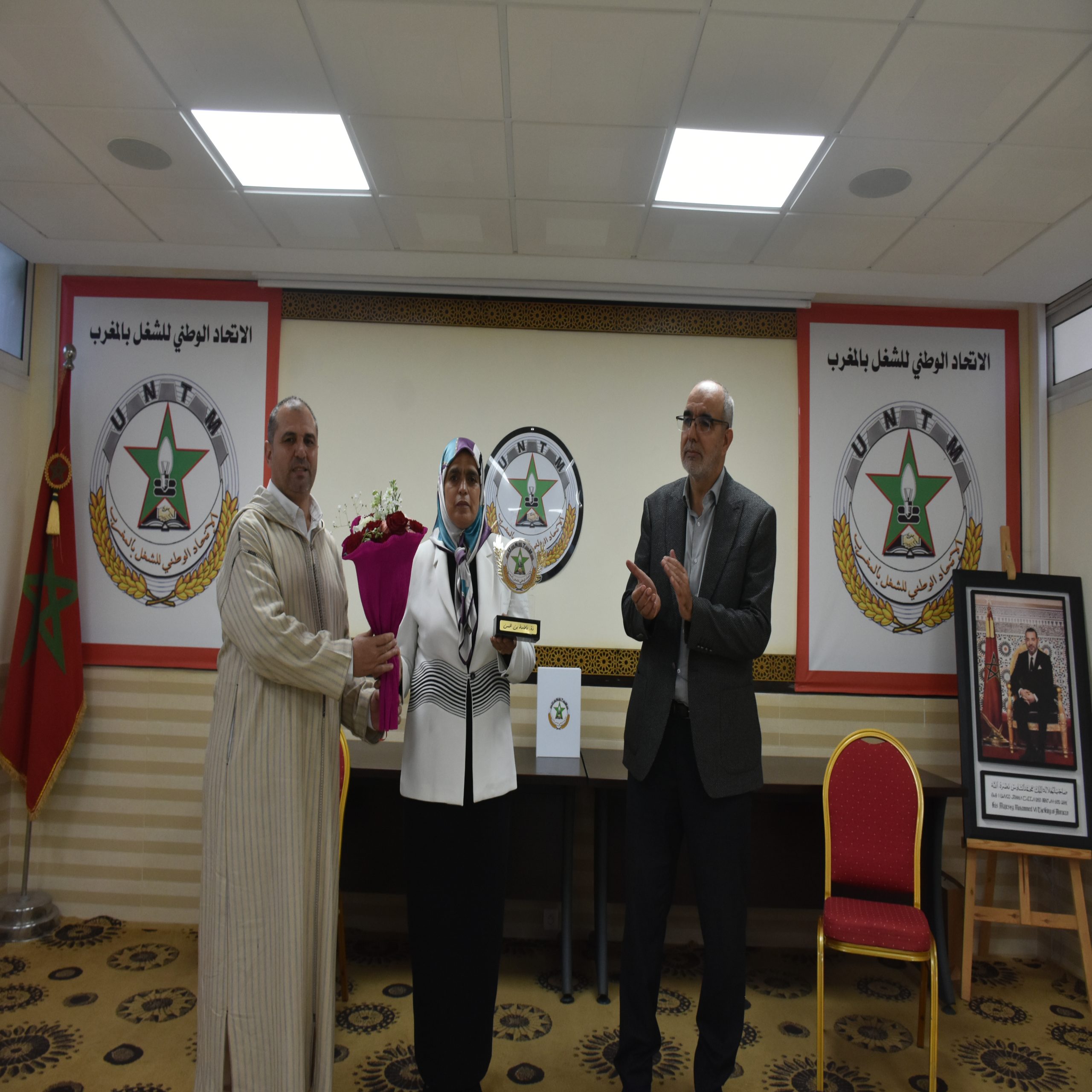على اثر اول اجتماع له، بعد انتخابه، خلال المؤتمر الوطني الثامن للاتحاد الوطني للشغل بالمغرب، نظم المكتب الوطني المنعقد الاحد 2 ابريل 2023, حفلا تكريميا على شرف رئيسة المجلس الوطني السابقة الأخت فاطمة بلحسن، وعضوا المكتب الوطني السابقان الأخت أمينة ماء العينين، والأخ بلقاسم معتصم، عرفانا لهم بالمجهودات التي بدلوها بالمكتب الوطني خدمة للشغيلة بكل تفان ونكران للذات .