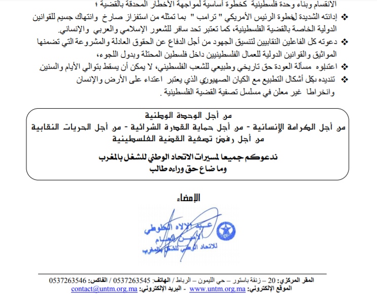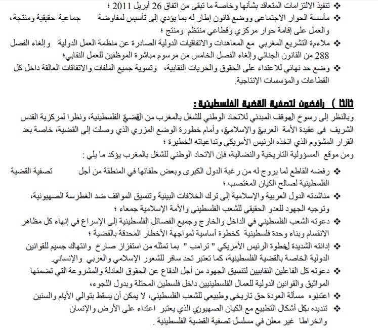 الوحدة الترابية والعيش الكريم للشغيلة والقضية الفلسطينية في صلب نداء الاتحاد لفاتح ماي 2018