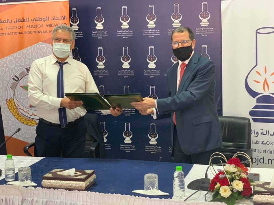 تم مساء الجمعة 24 يوليوز 2020 ، توقيع اتفاقية شراكة بين نقابة الاتحاد الوطني للشغل بالمغرب، وحزب العدالة والتنمية.