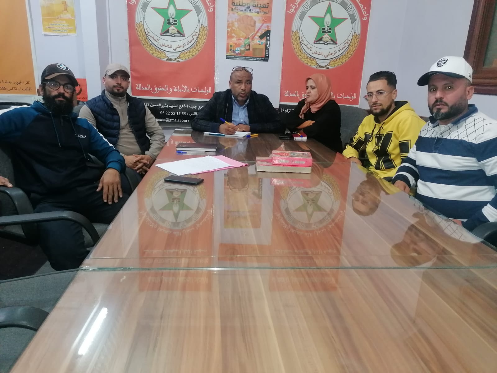 وبعد ذلك تم المرور إلى عملية انتخاب الكاتب المحلي لنقابة شركة المستخدمين A.Z.R تم بقية أعضاء المكتب والتي كانت بإجماع الحاضرين، حيث انتخب ياسين مفكر كاتبا محليا، وجواد فصيح نائبا له، وعمر ايت حسو أمينا للمال، وحمزة موافق مقررا، والمصطفى الوتر مستشارا.