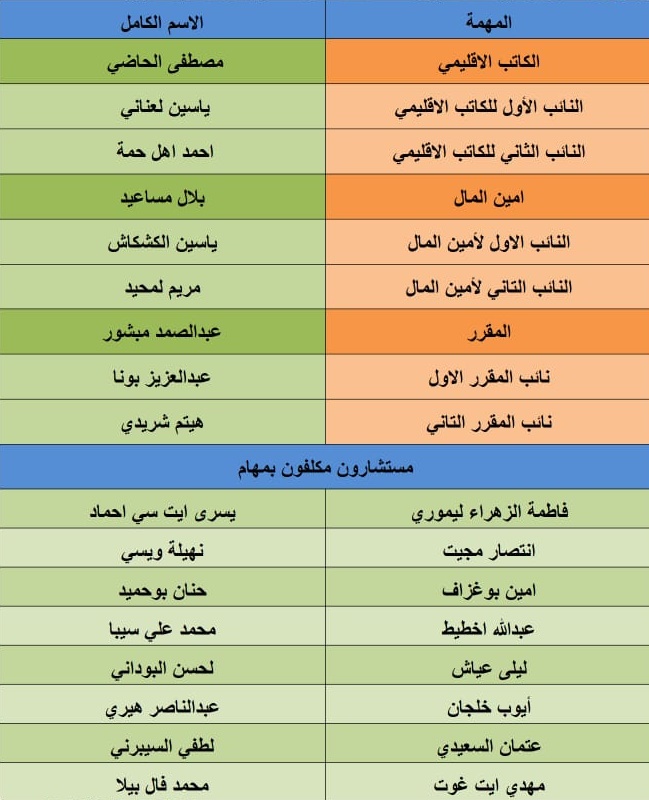 وفي جو من الديمقراطية واحتراما لمضامين القانون الداخلي للجامعة، تم انتخاب مصطفى الحاضي كاتبا إقليميا، وياسين العناني نائبا أزلا، وأحمد أهل هما نائبا ثانيا.