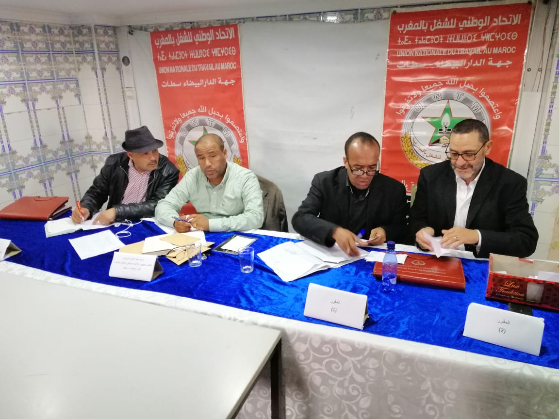 اشرف الكاتب الجهوي للاتحاد الوطني للشغل بالمغرب بجهة الدار البيضاء ـ سطات عبد الكريم البريكي و الأخ الكاتب الجهوي للنقل الحضري بالدار البيضاء الزا، الجمعة 29 نونبر 2019 على تأسيس المكتب الإقليمي للنقل الحضري بالدار البيضاء الزا.