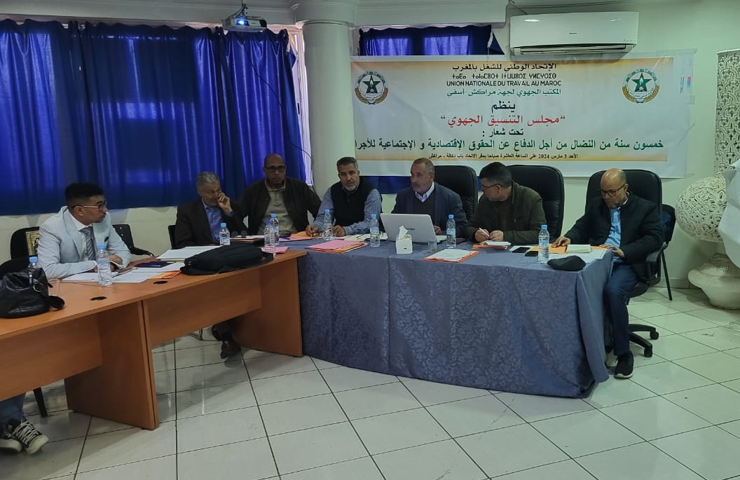 خلال اجتماعه..مجلس التنسيق الجهوي لمراكش آسفي يندد بالقرارات التعسفية والإجراءات التاديبية في حق بعض أعضاء المكاتب النقابية و مناضلي الاتحاد