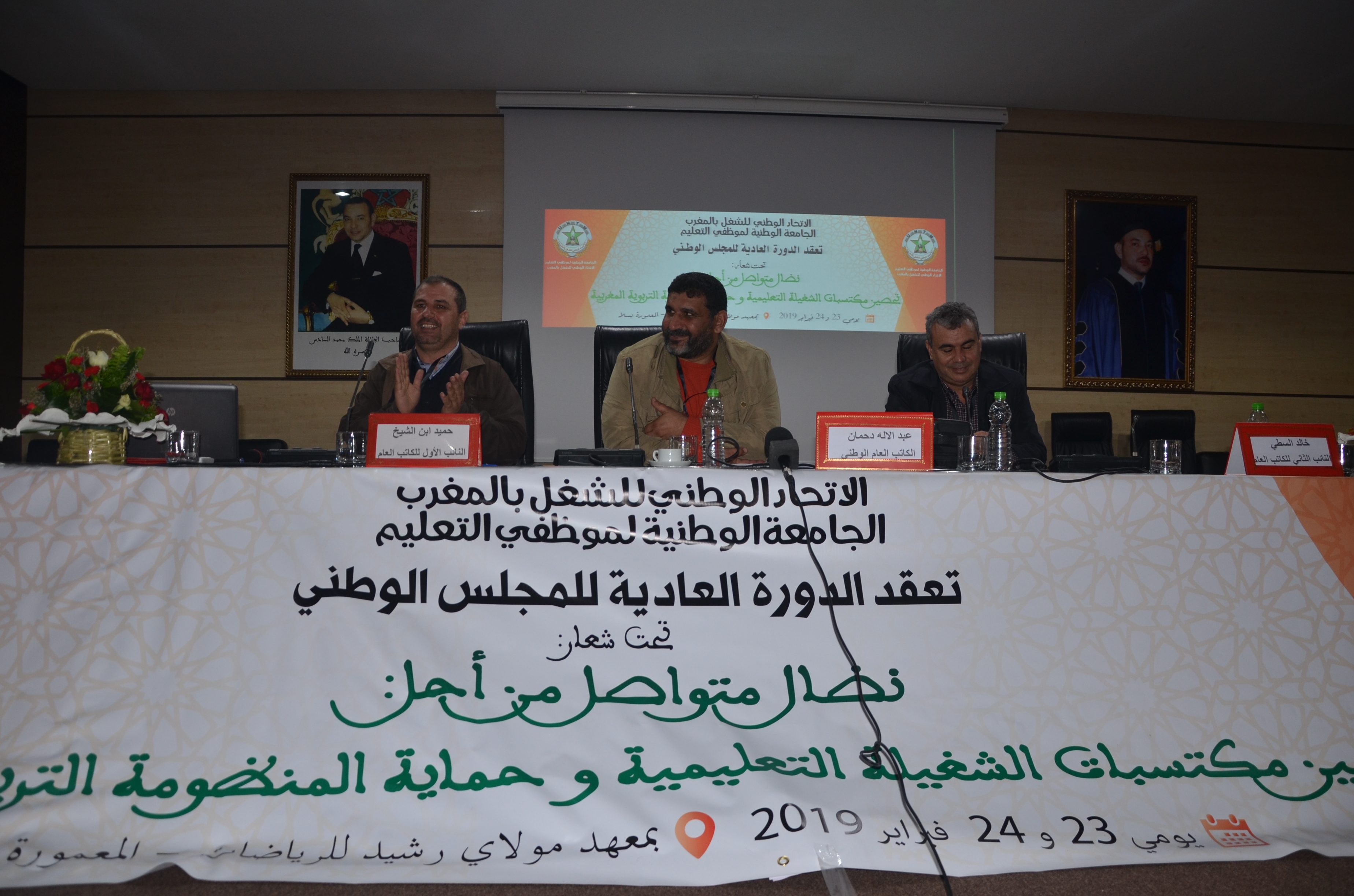وشدد دحمان خلال الكلمة الافتتاحية للمجلس الوطني للجامعة، المنعقد يومي يومي السبت والأحد 23/24 فبراير 2019 بمركز المعمورة بسلا، على ضرورة تسجيل حضور نضال قوي على مستوى الساحة التعليمية إن على مستوى تقوية المسار النضالي والتفاوضي من أجل تصحيح اختلالات المنظومة التربوية والإسهام فيها من خلال الفعل النقابي المسؤول الذي يستحضر المصلحة العامة التي هي مصلحة الوطن، أو من خلال الضغط لتصحيح مسار الحوار القطاعي وجعله في خدمة الأسرة التعليمية ومطالبها.