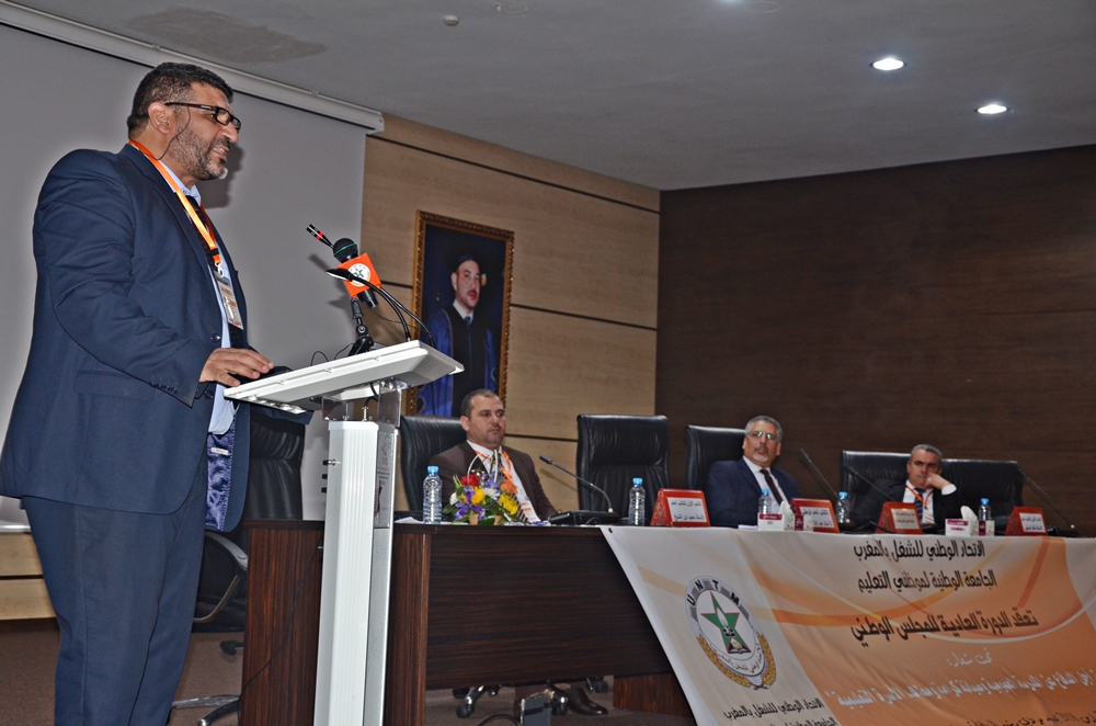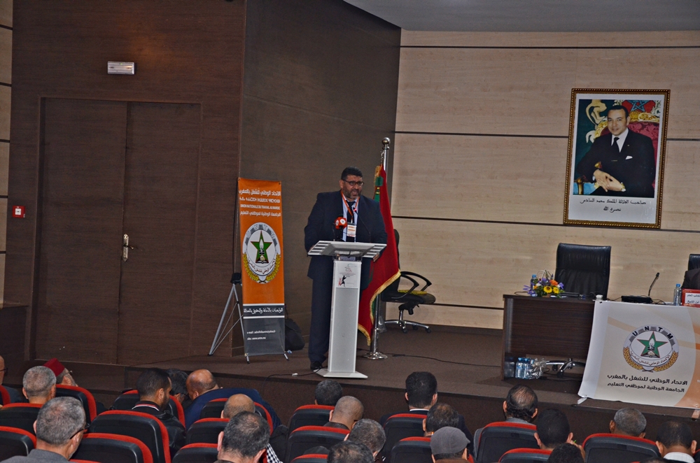 وتابع دحمان ، ” لا يمكن أن نجتمع دون أن ندين التصرفات غير المسؤولة لبعض المدراء الجهويين والاقليميين (الراشيدية، وجدة وأكادير)، الذين نقول لهم أن استهداف مناضلي الجامعة ومنخرطيها هو استهداف لنا جميعا ولن نتواطأ معهم بالصمت وسندافع عن مناضلينا ومنخرطينا بالقوة والصرامة المطلوبة”، مؤكدا في الوقت نفسه على موقف الجامعة الوطنية لموظفي التعليم من مجانية التعليم التي تعتبرها خطا احمرا لضمان حق المغاربة وخاصة الضعفاء منهم في التعلم.
