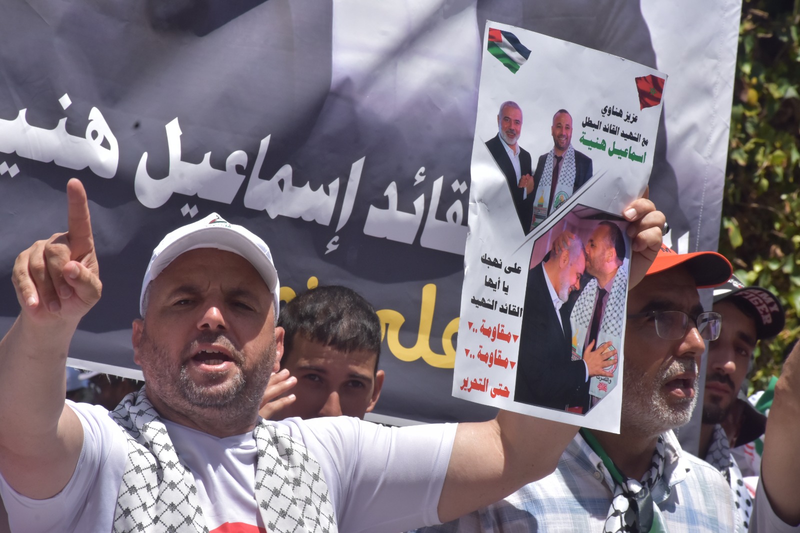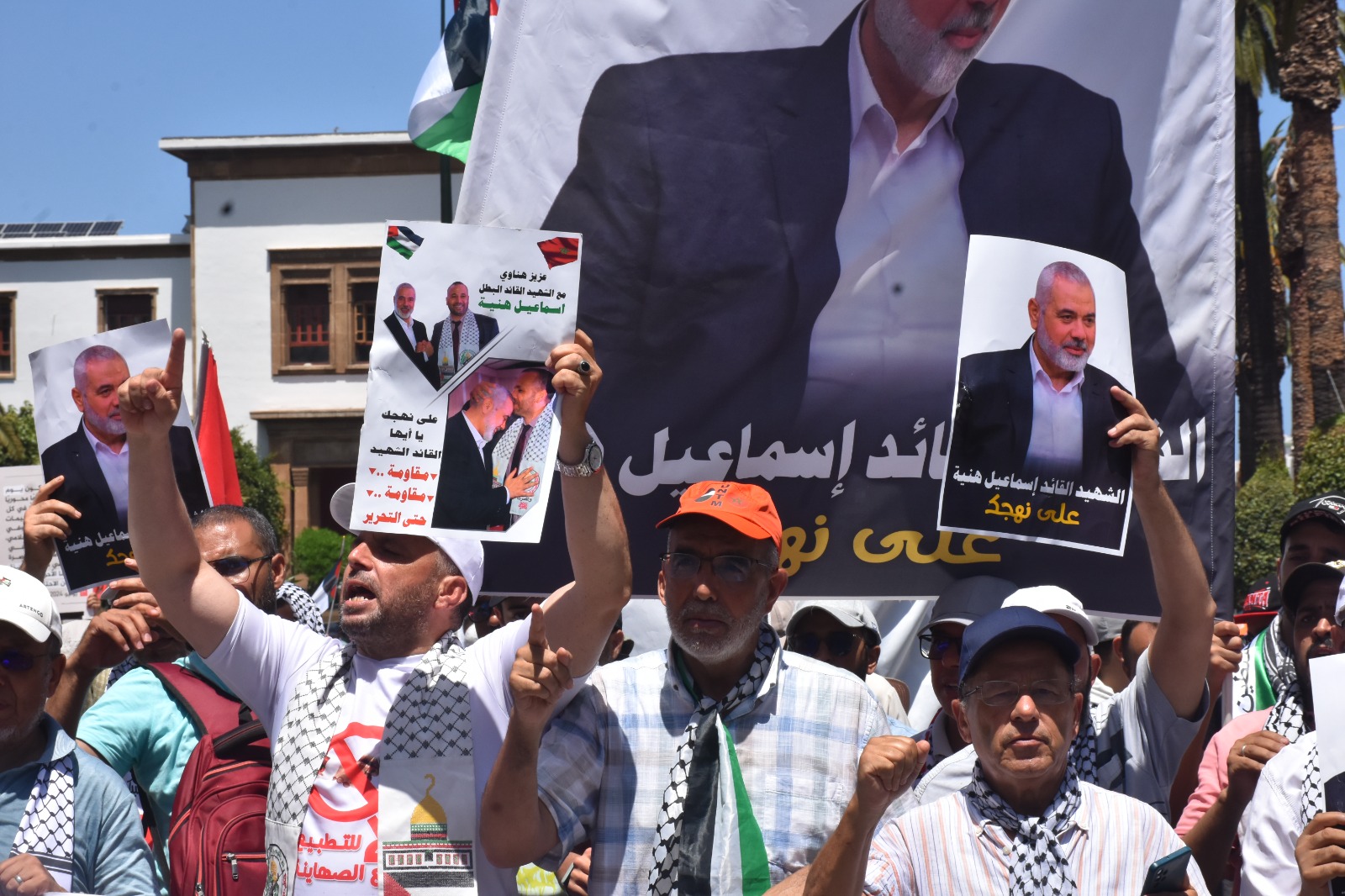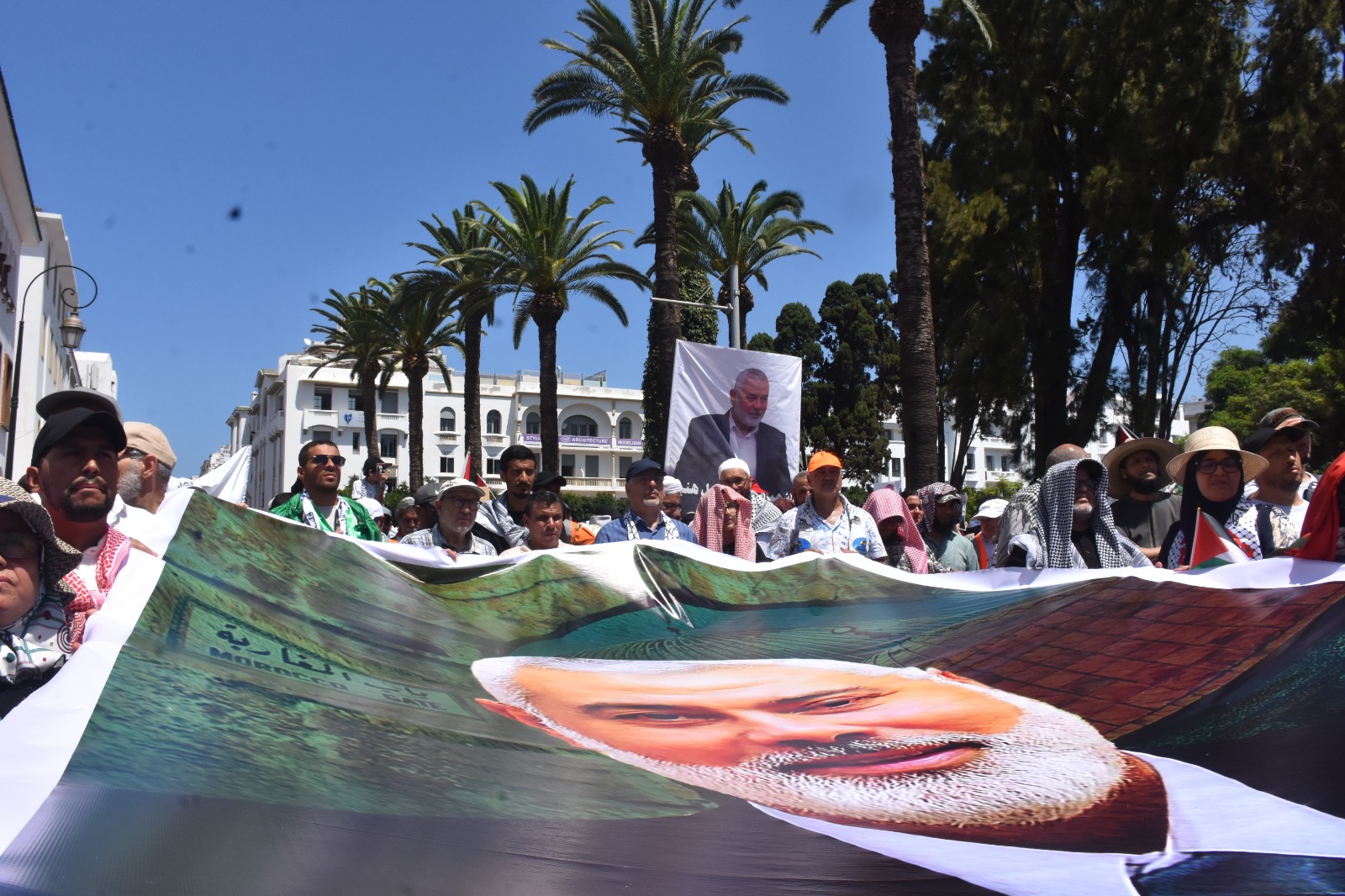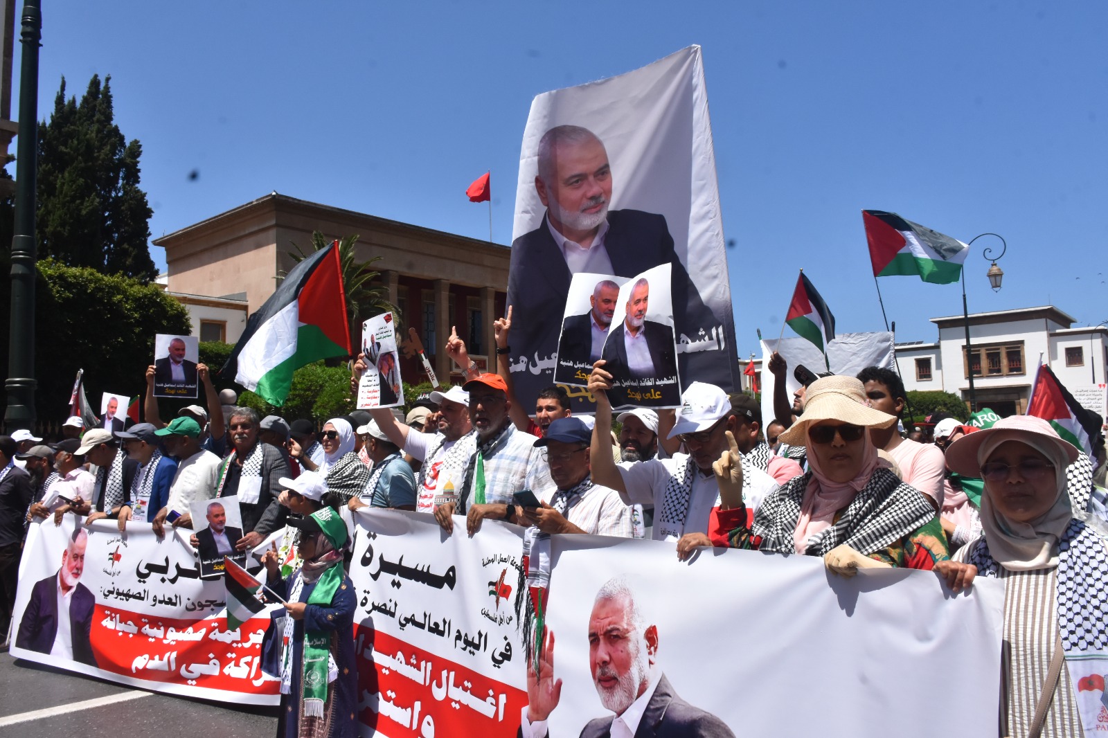وعرفت المسيرة التي انطلقت من ساحة باب الأحد وصولا إلى محطة قطار الرباط المدينة، رفع شعارات تستنكر الجريمة البشعة التي اقترفها الكيان الصهيوني أمام أنظار العالم باستهداف الشهيد اسماعيل هنية في مقر إقامته، في ضرب سافر لكل المواثيق والمعاهدات الدولية.