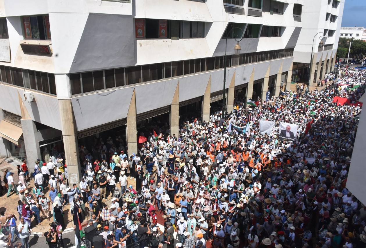 ورفع المحتجون خلال المسيرة التي عرفت مشاركة العديد من الوجوه السياسية والحقوقية والأكاديمية، شعارات تطالب بوقف فوري لهذه الحرب الدموية، ووقف التطبيع مع الكيان الغاصب المجرم، وتحيي غزة والمقاومة.